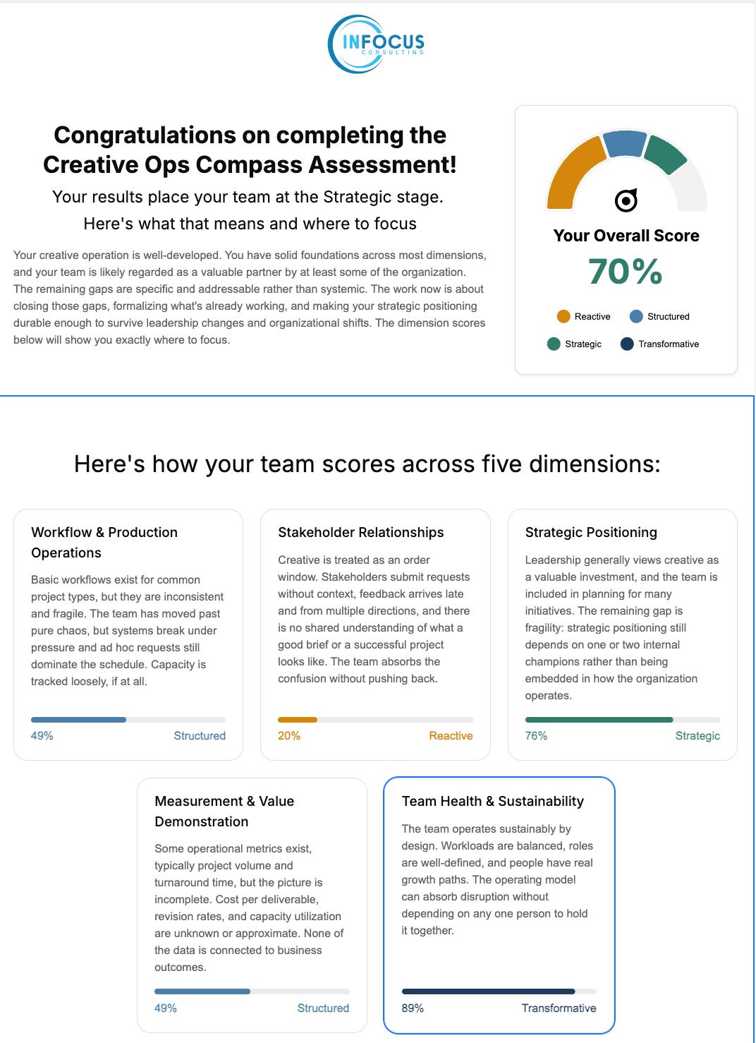 Most creative leaders have a sense that something isn't working, but struggle to pinpoint exactly what. This assessment gives you a specific, scored view of your operation across five dimensions, so you can stop guessing and start fixing the right things.